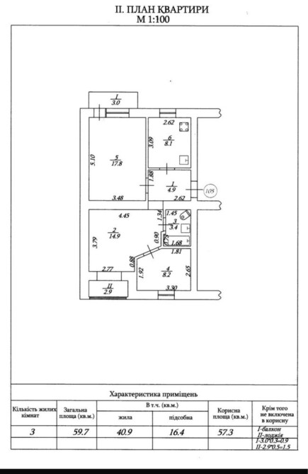 • Загальна площа 59.7 м2