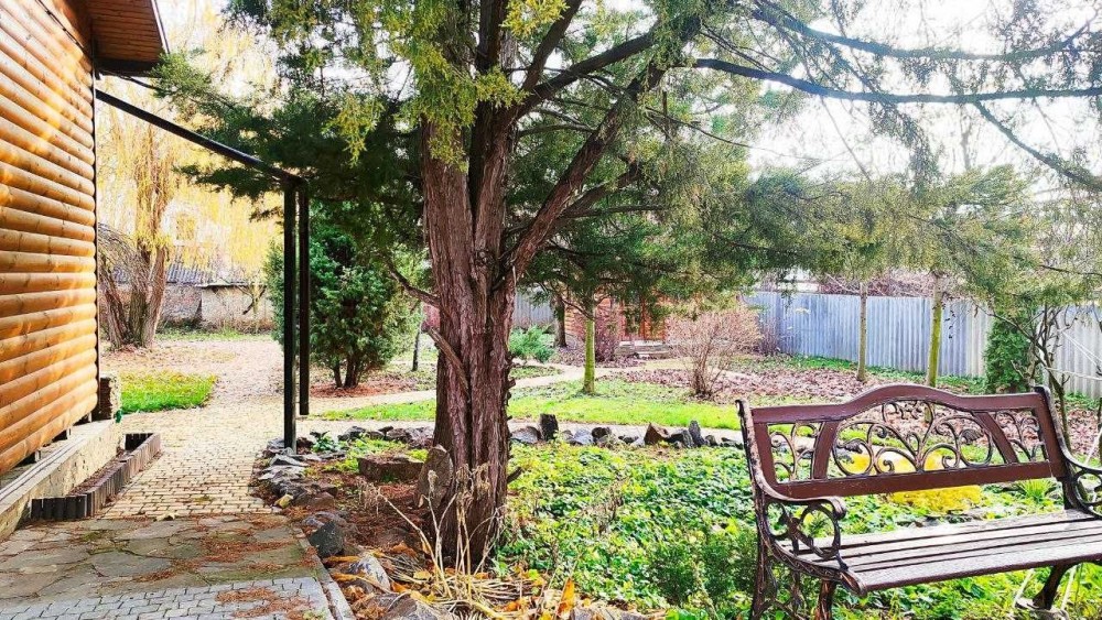 На ділянці є шикарна лазня, гостьовий будинок та капітальний гараж.