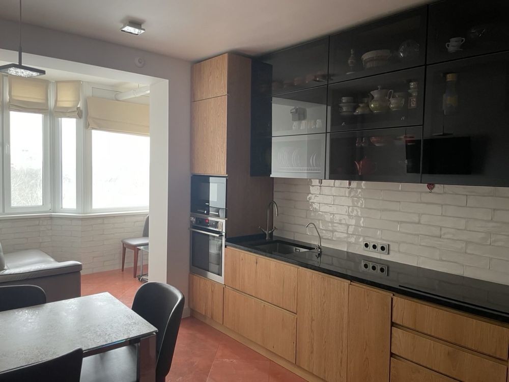 Дизайнерський ремонт повністю завершений, виконаний з використанням якісних матеріалів. Загальна площа 90 кВ. м, кухня 21 кв.м, 2 санвузла, пральня.