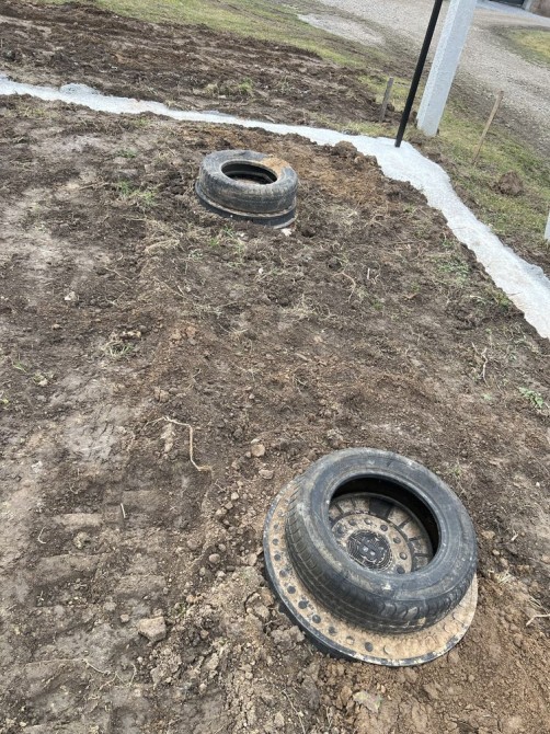Залита в землю по кругу лента на забер