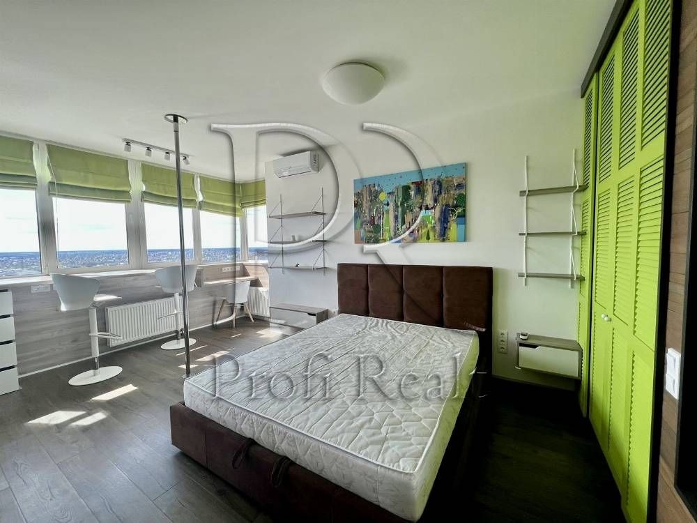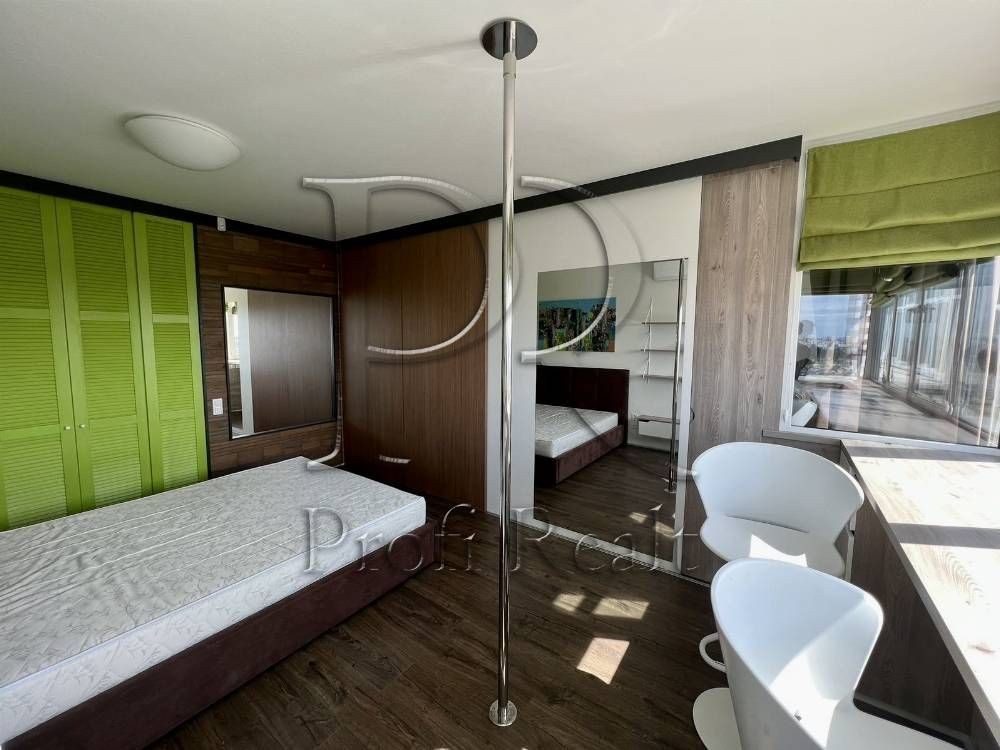Квартира має все, що потрібно для повсякденного життя і навіть більше. У ній дві гардеробні кімнати, великий санвузол з шафою-пральною, ванною і душем, робоча зона, шафа з вбудованою прасувальною дошкою, барна стійка, пілон, зона ТБ і панорамні вікна з видами. Розкладний стіл дозволяє комфортно приймати до 8 гостей на вечерю.