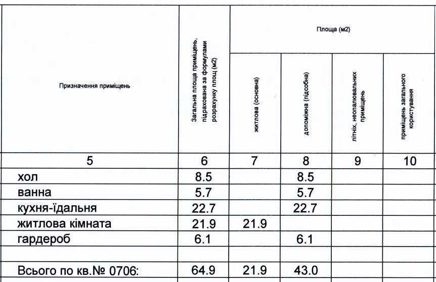 Площа — 64,9 м²