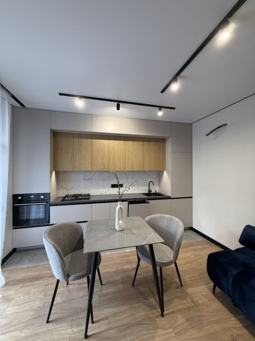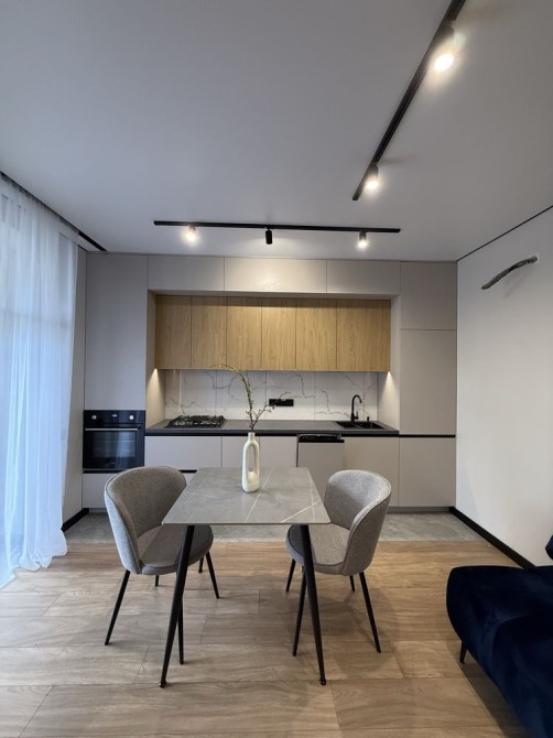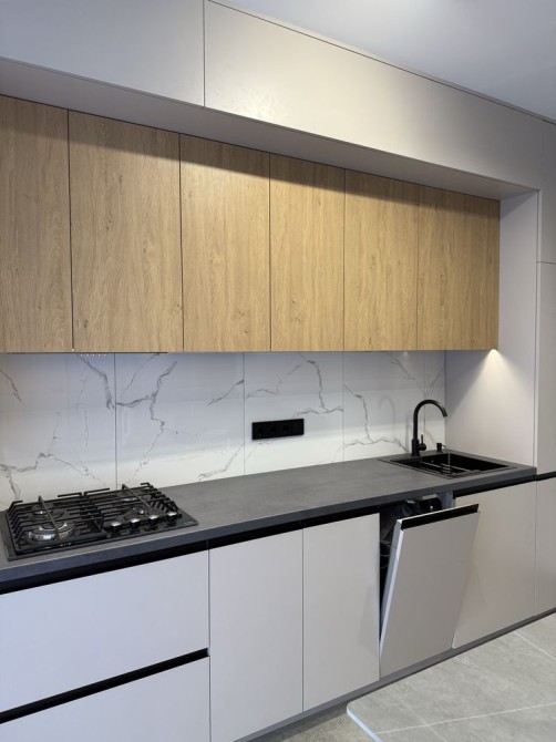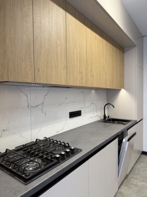 – Вбудована кухня з технікою: варильна поверхня, духова шафа, витяжка, посудомийна машина