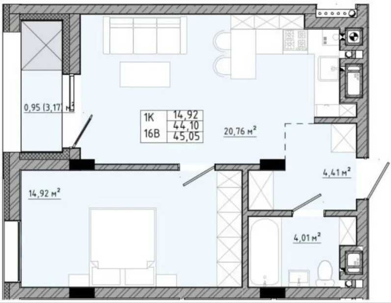 • Загальна площа 45.05 м2