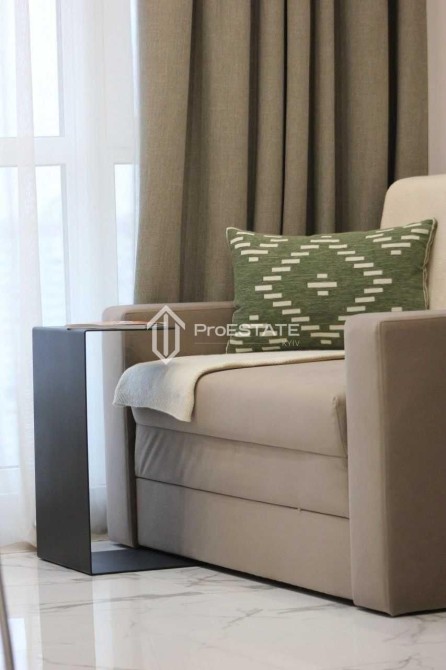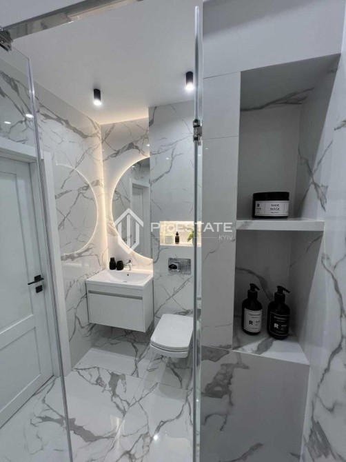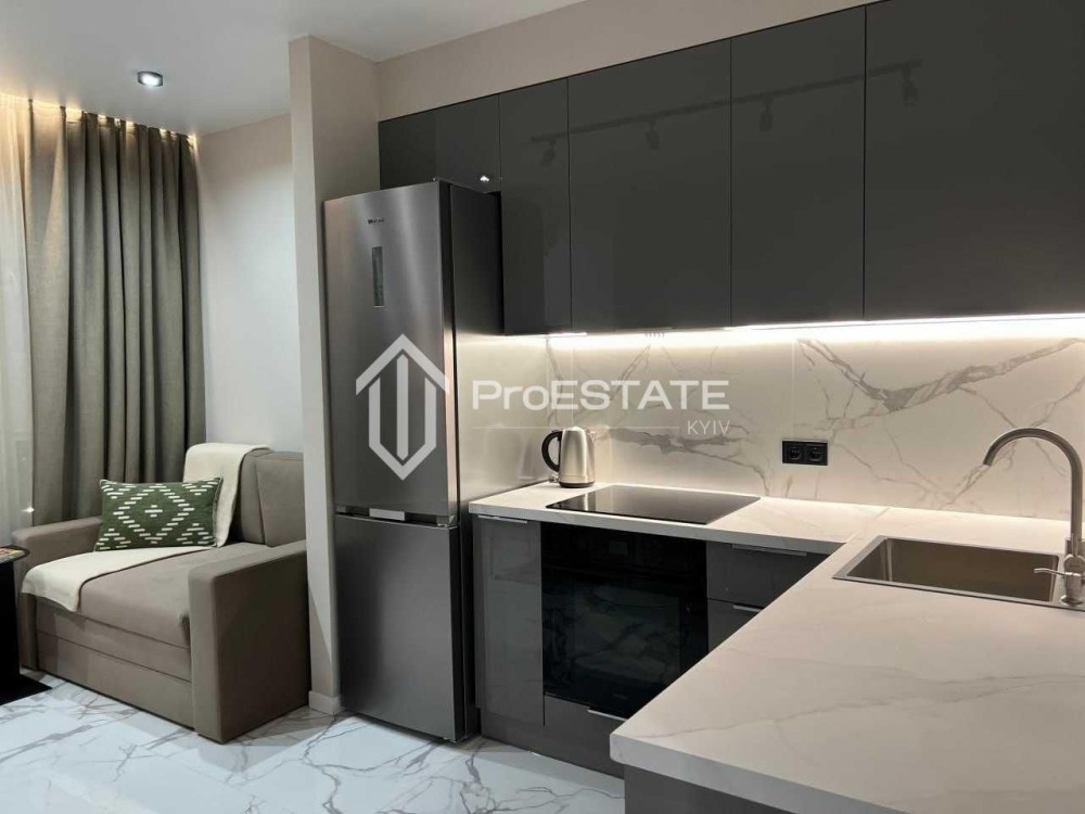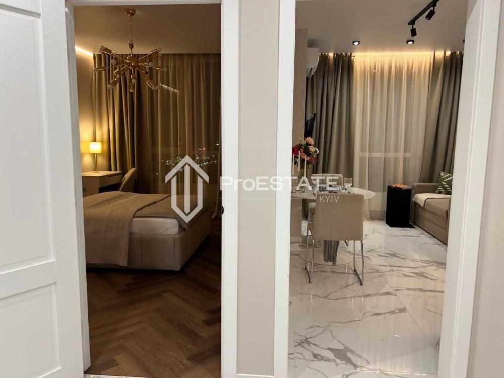 Пропонується абсолютно нова 1-кімнатна квартира після дизайнерського ремонту, виконаного у 2024 році. Інтер'єр оформлено у світлих тонах, з використанням мармурових фактур та багаторівневого освітлення.