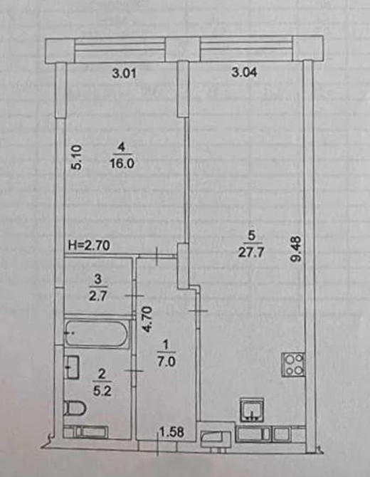 • Площа кухні 27.7 м2