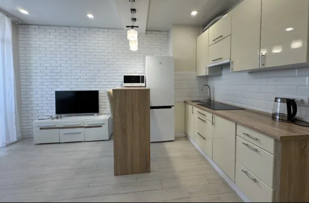 Поруч з метро Академмістечко. В квартирі виконаний якісний ремонт, укомплектована всім необхідним для комфортного проживання, все що на фото залишається новому власнику, в будинку є генератор на ліфти та лічильники. Біля будинку озеро і ліс.