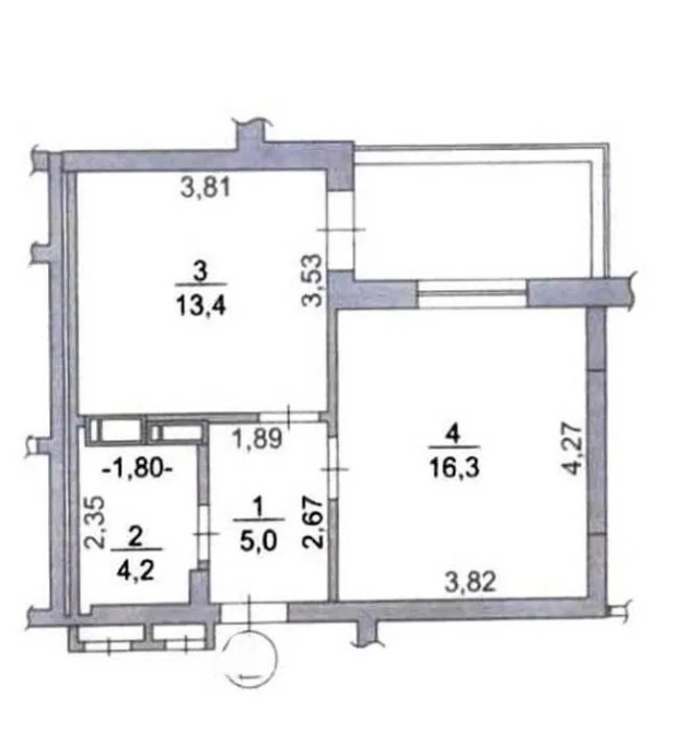 Проща: загальна - 41м2, житлова - 16,3м2, кухня -13,4м2.