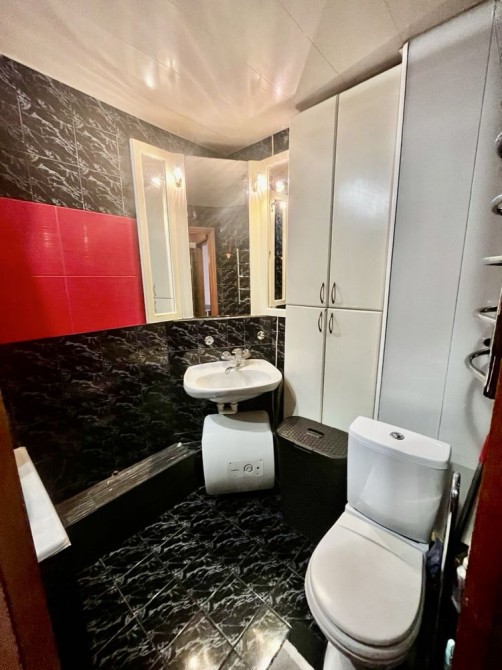 Квартира укомплектована необхідними меблями та технікою: двоспальне ліжко, диван, крісла, шафа-купе, кондиціонер, пральна машина, холодильник, бойлер, газова плита. Все лишається новим власникам.
