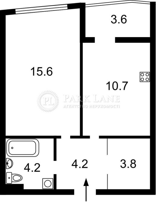 продаж 1-к видової квартири. Кухня-студіо 20.71, лоджія – 3.68