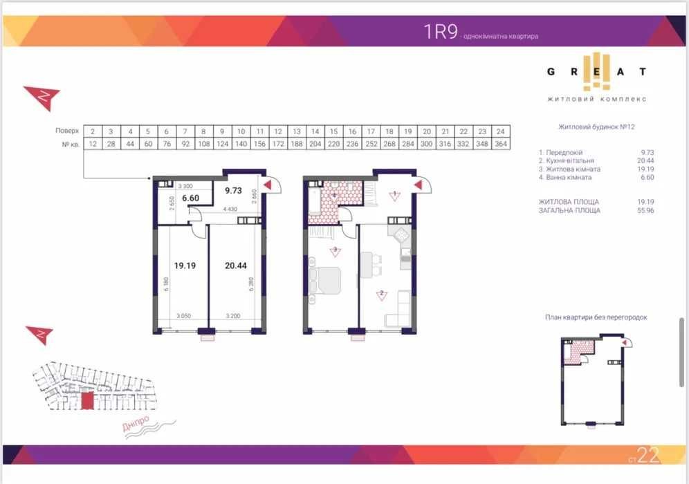 Продаж 1 кім. 56 м² Вид на Дніпро жк Great Грейт з Документами!