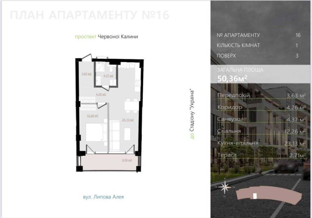 Площа: 50,36 м²