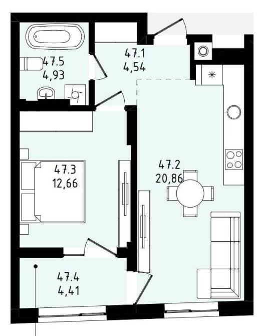• Загальна площа 47.4 м2