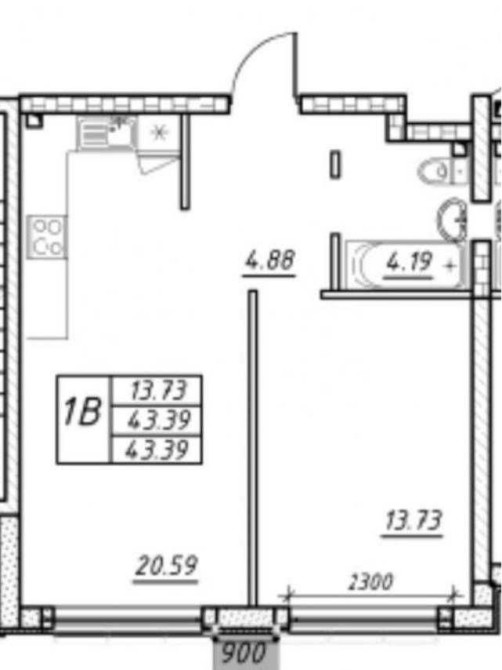 • Загальна площа 43 м2