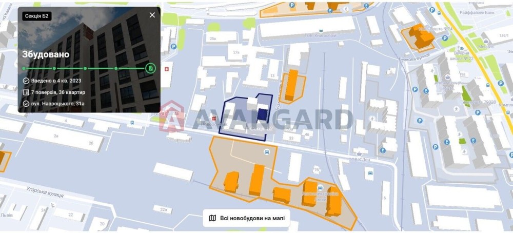 ЖК розташований у затишному спальному районі Львова. Будинок має закриту територію зі зручною інфраструктурою: