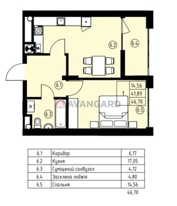 • Загальна площа 47 м2