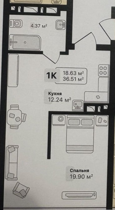 • Загальна площа 36.5 м2