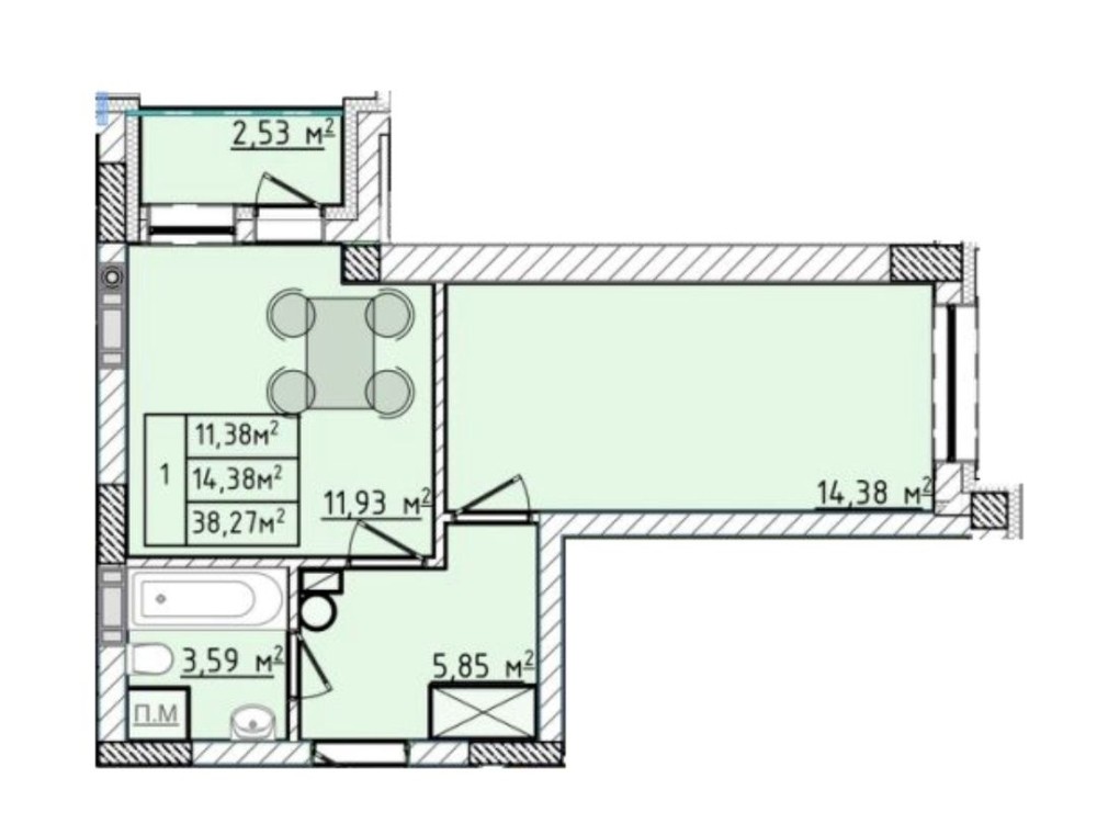 Площа: 38,27 м²