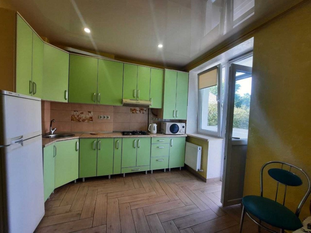 Вікна виходять на західну сторону, два виходи на просторий балкон із кухні та кімнати.