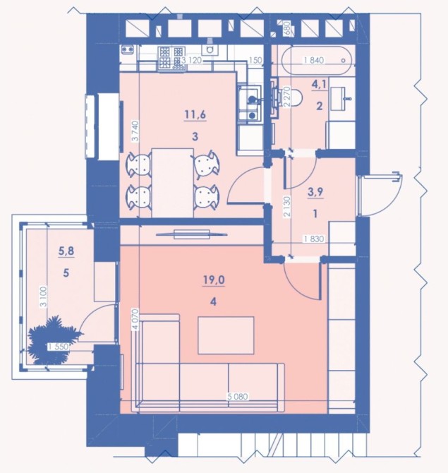 • Загальна площа 45 м2