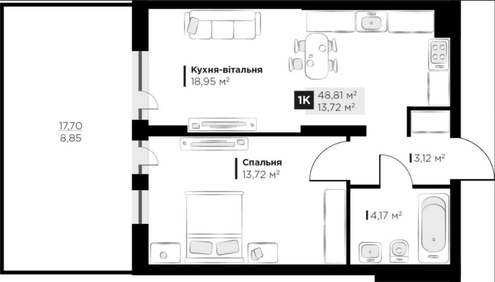 • Загальна площа 48.8 м2