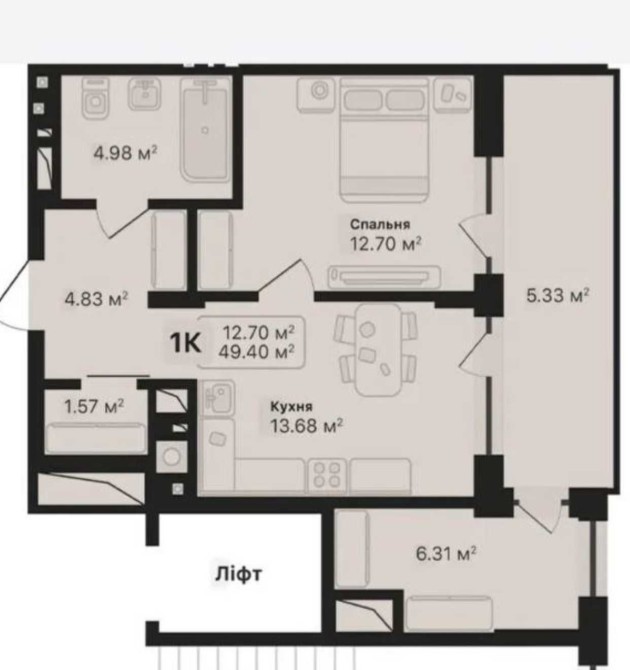 • Загальна площа 49.4 м2