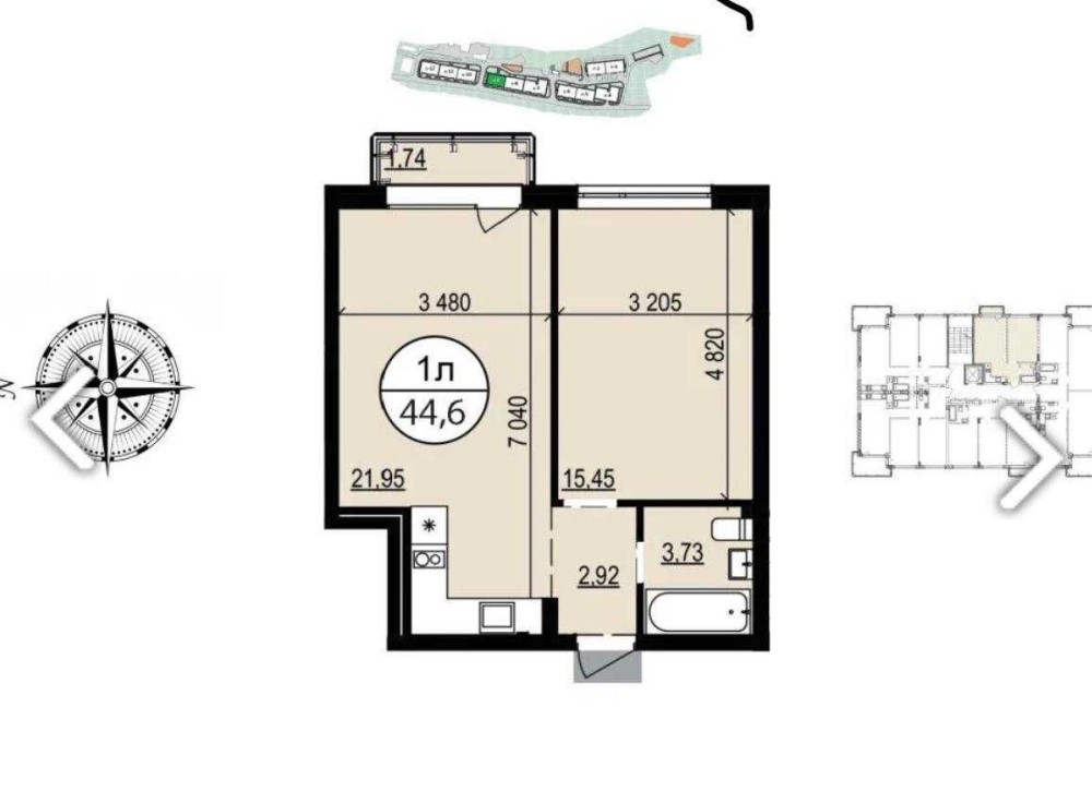• Загальна площа 44.6 м2