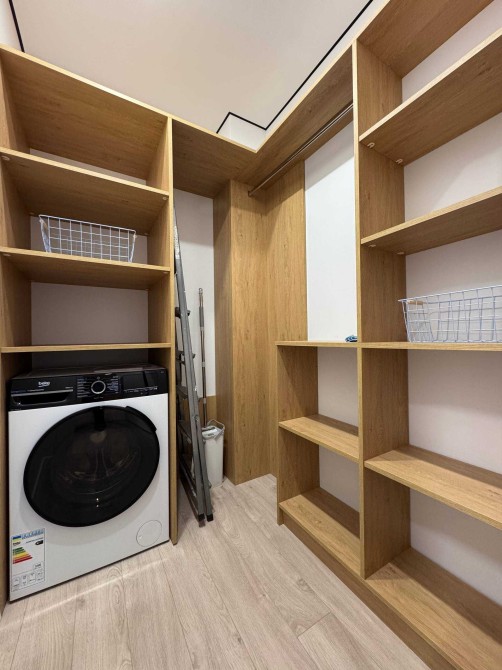 Також є пральня з машинкою, поличками і місцем для праски.