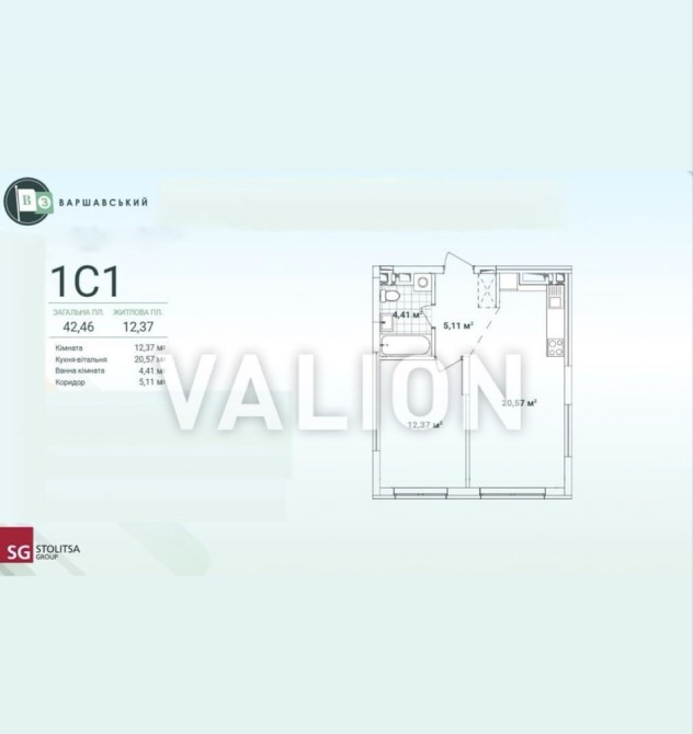 Пропонується простора 1-кімнатна квартира планування 1С1 у сучасному житловому комплексі Варшавський 3 від надійного забудовника Stolitsa Group.
