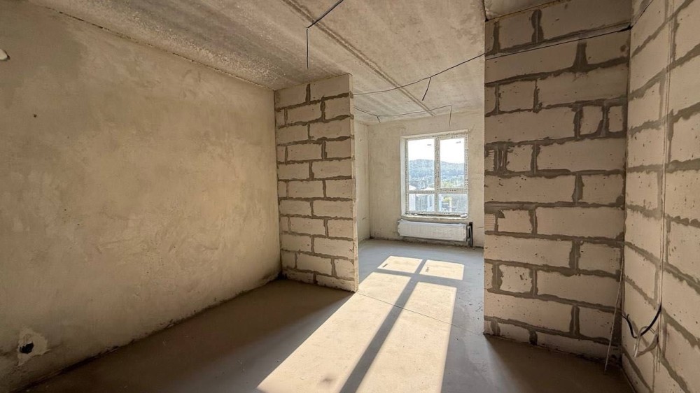 Встановлено газовий котел, батареї,є стяжка та щтукатурка стін.