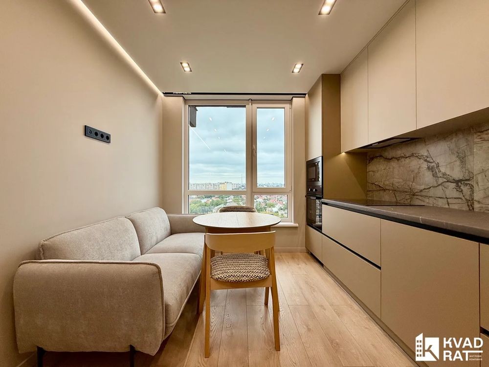 Квартира світла та затишна, повністю готова для комфортного проживання. Великі панорамні вікна з виглядом на місто.