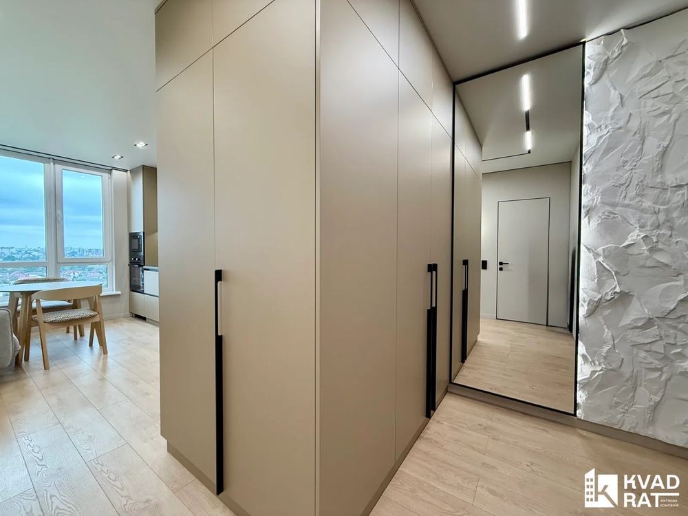 - зручна прихожа з дзеркалом у повний зріст та вмісткими шафами для гардеробу.