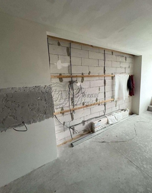 Виконані чорнові ремонтні роботи: розведена електрика та сантехніка; штукатурка стін; ніші під вбудовані шафи; підготовлена підлога. Є дизайн-проєкт, який можна реалізувати відразу після покупки.