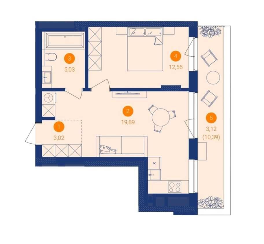• Загальна площа 43.63 м2