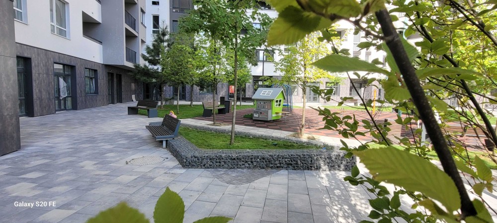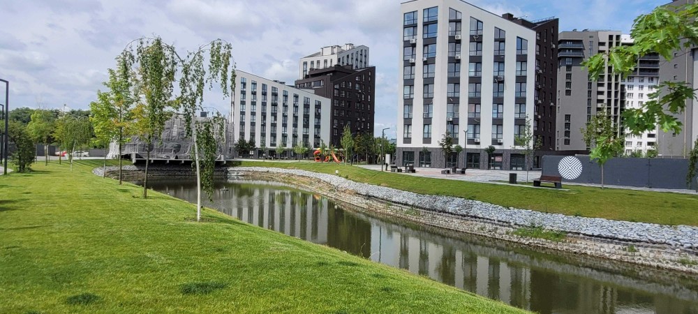 • доглянута зелена територія з озером та зонами відпочинку