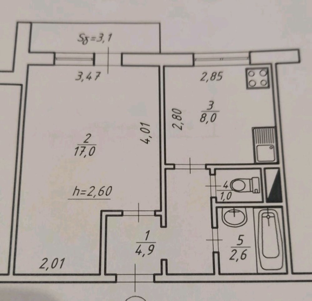 • Площа кухні 8 м2