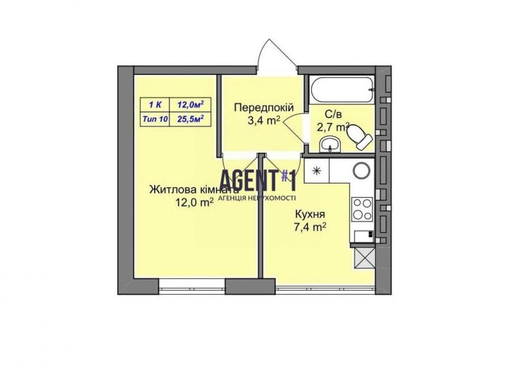 • Загальна площа 25.5 м2