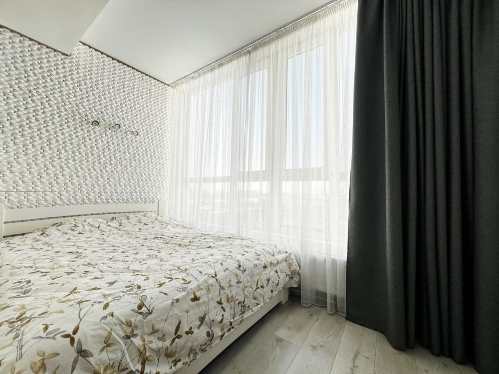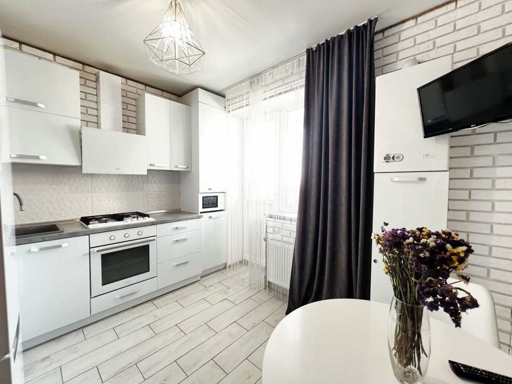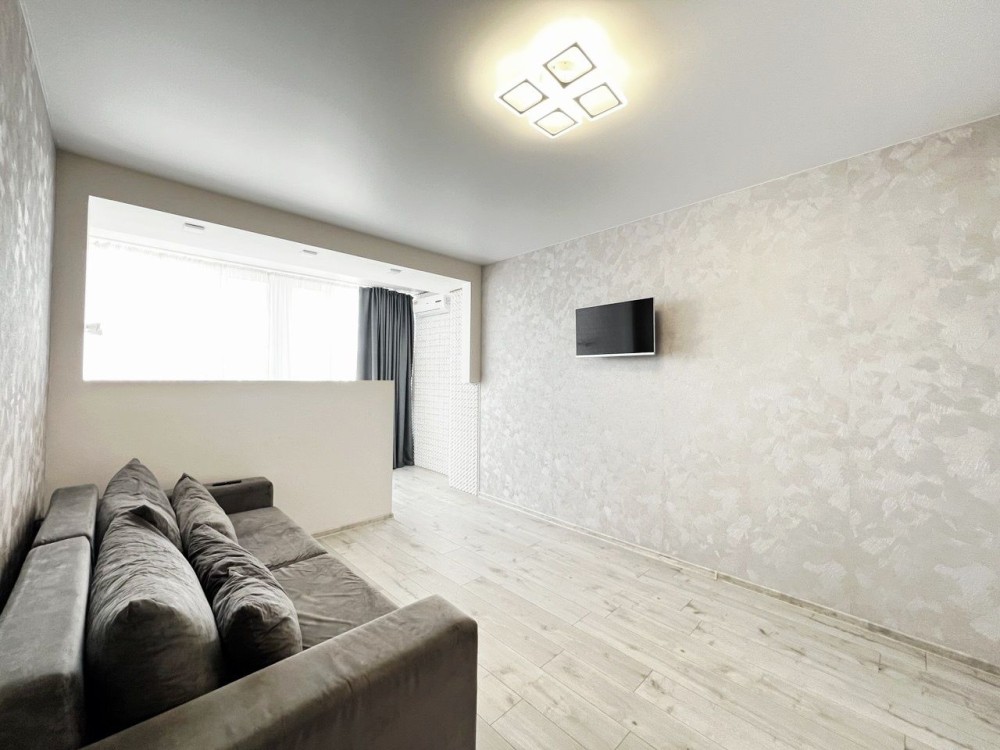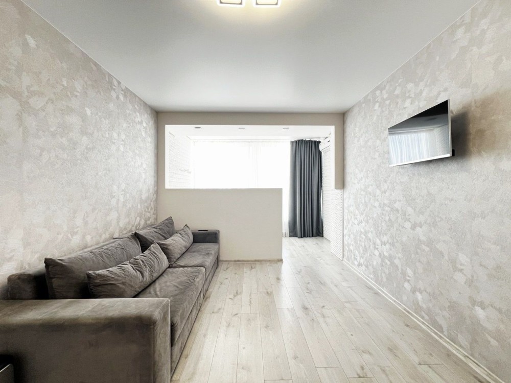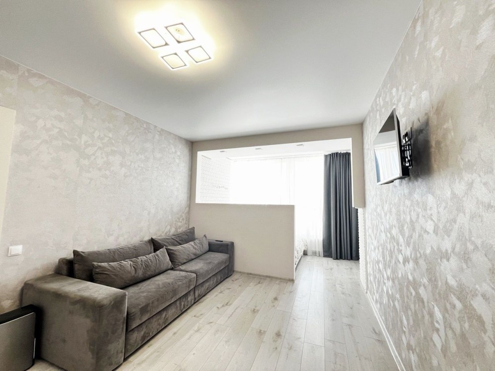 Квартира правильного планування, з великою кімнатою, кухнею, лоджею, облаштована всіма меблями і технікою, яка залишається новим власникам.