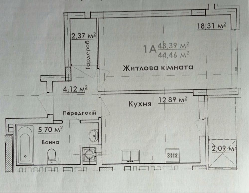 • Загальна площа 45 м2