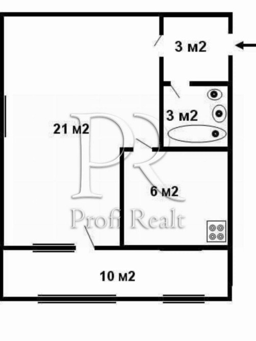Загальна площа 31 м², житлова 21 м², кухня 6 м².