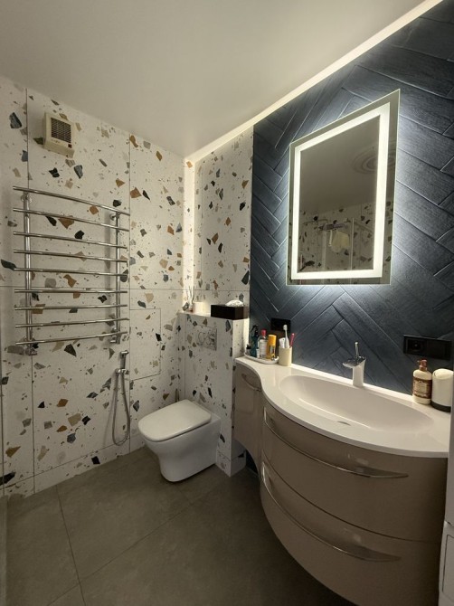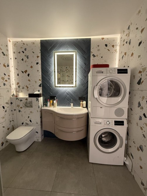 По всій квартирі додаткова підсвітка,на підлозі-коштовна деревʼяна паркетна дошка,окрім ванної кімнати.Повністю облаштована гардеробна.Встановлено систему безперебійного живлення при відключення(інвертор та акумулятор),індивідуальне опалення,кондиціонер,посудомийна та сушильна машини,осмос для питної води.
