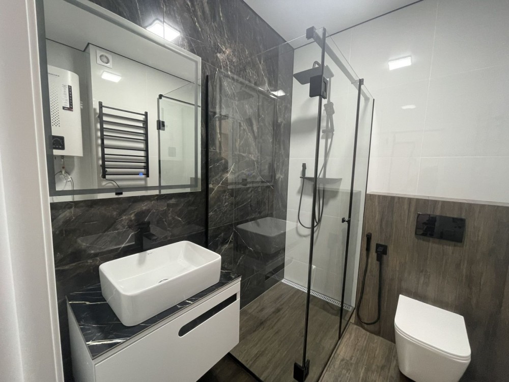 Санвузол: Німецька сантехніка Kroner, інсталяція Koller Pool (Австрія), скляна душова кабіна Vorona, гігієнічний душ.