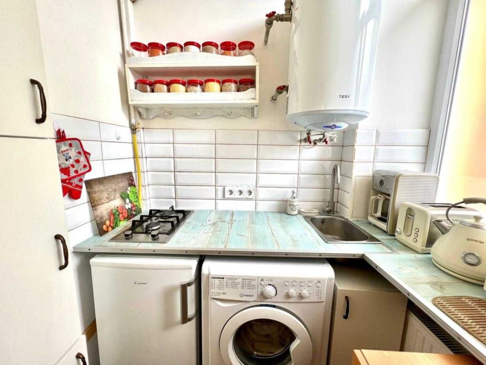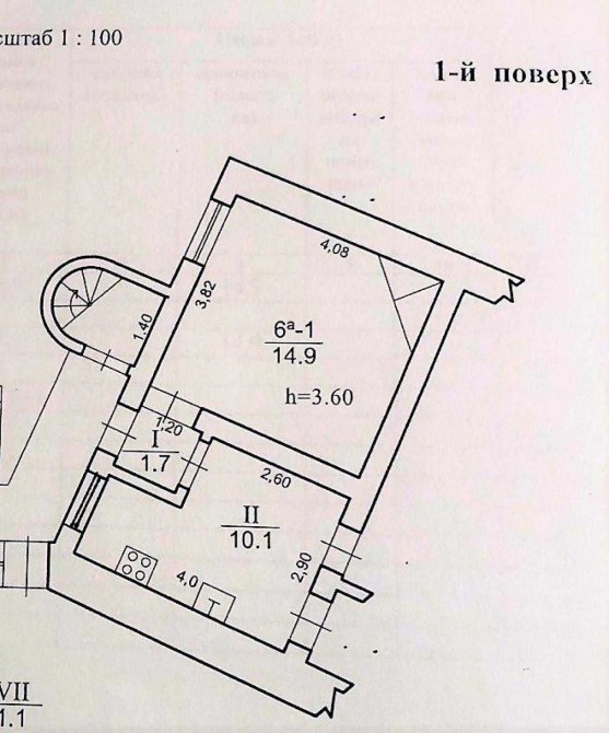 Загальна площа квартири на першому поверсі 19 м2 , житлова 14.9 м2, кухня 2 м2.