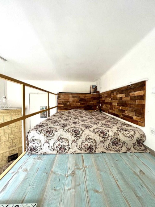 Спальне місце в квартирі розташоване в напів-поверсі площею 5.8 м2.