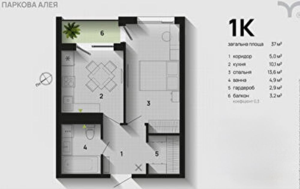 • Загальна площа 37.7 м2