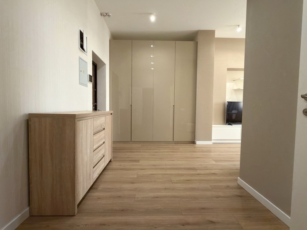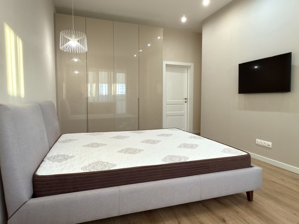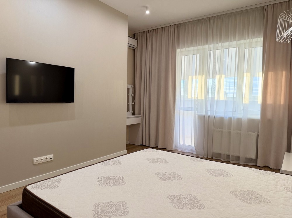 • Спальня: двоспальне ліжко, кондиціонер, смарт TV, велика шафа-купе.