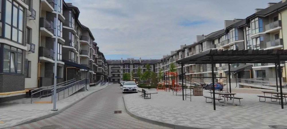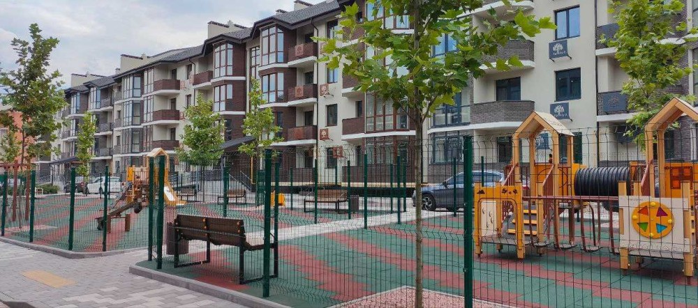 ЖК будується у форматі клубних 4-х поверхових будинків зі своєю інфростуктурою та із закритою та охоронюваною територією. На території є дитячі та спортивні майданчики, і вся територія має гарне озелення,яке Вас буде радувати з вікна цілий рік.