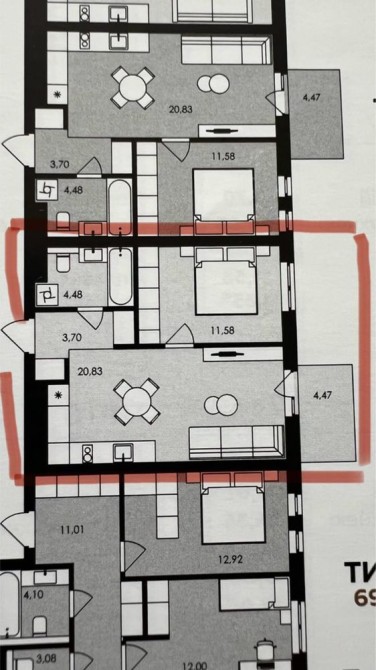 60кв.м. кімната 20 м² кухня 12кв.м.