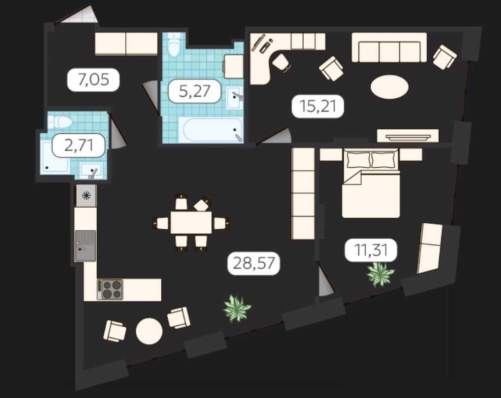 • Площа кухні 28.57 м2