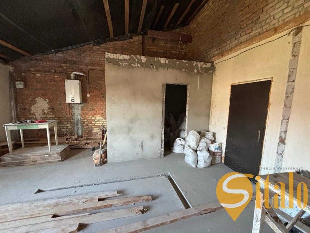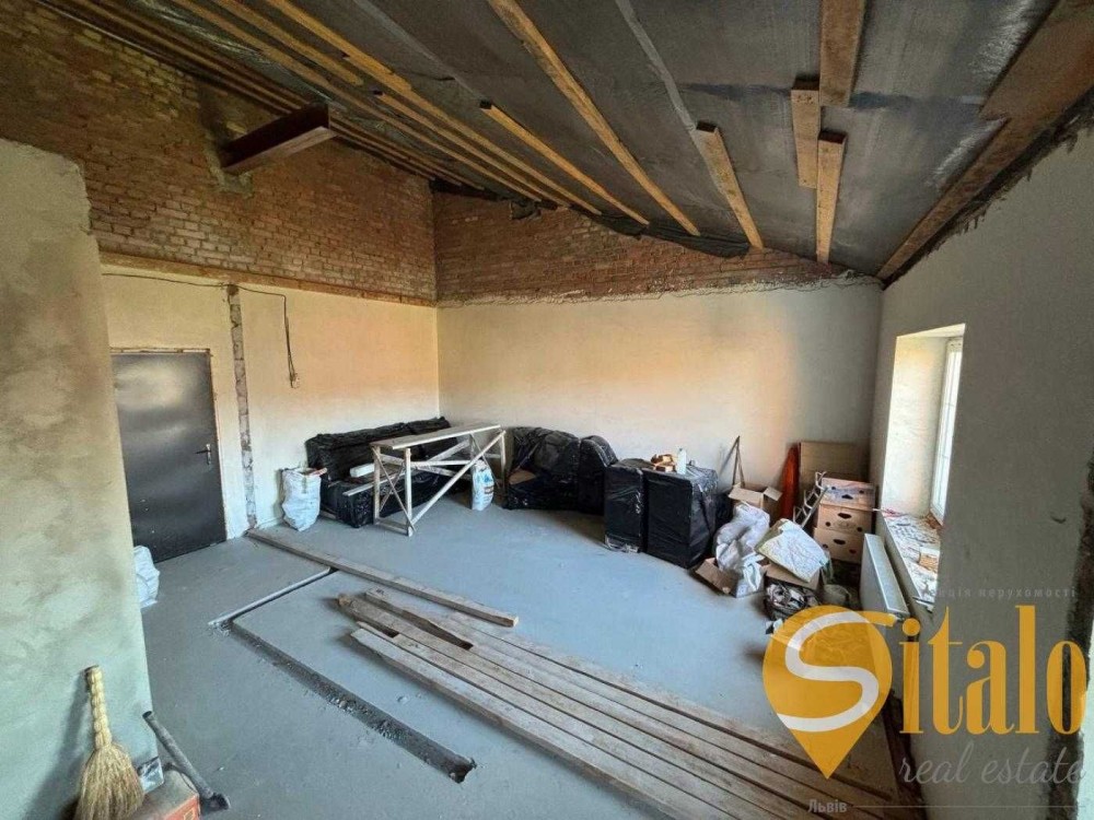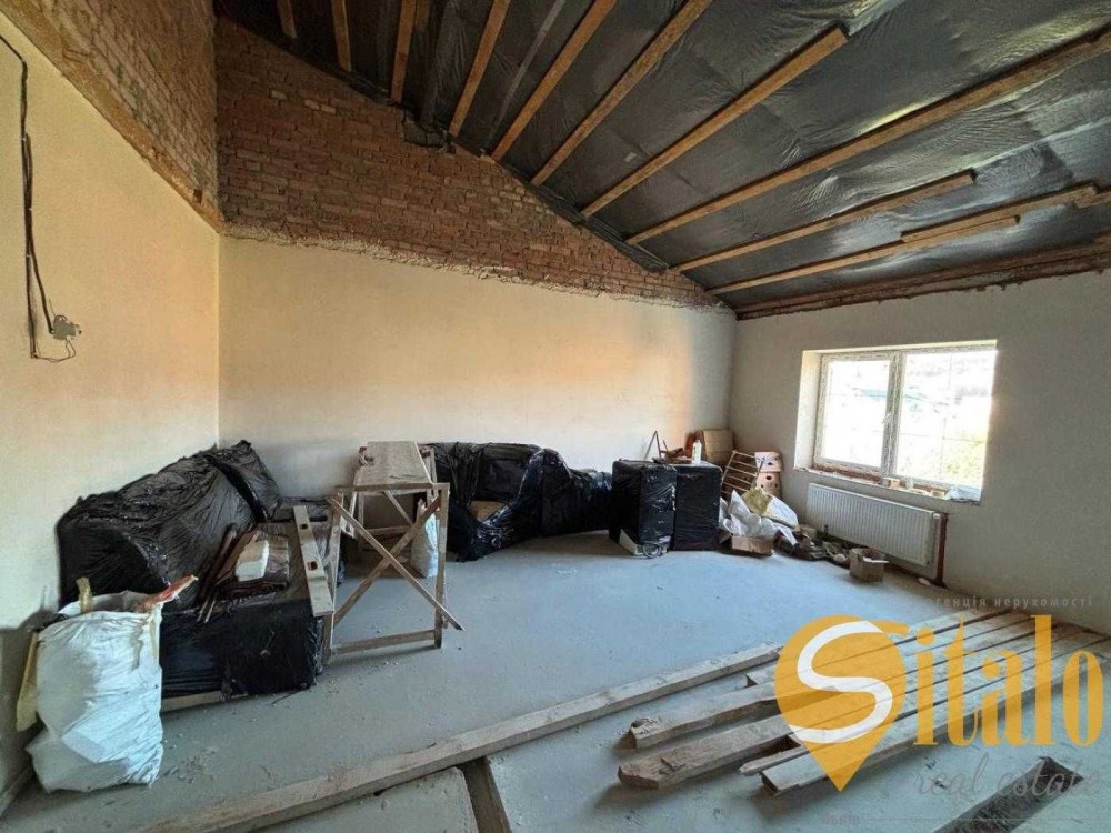 Утеплений дах, демонтоване перекриття. Є можливість облаштувати другий рівень та встановити мансардні вікна.